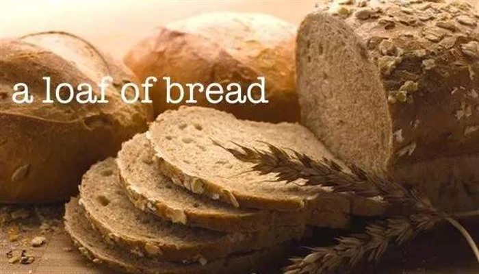 A loaf of bread: 一条面包 ,切片面包组成的一长条