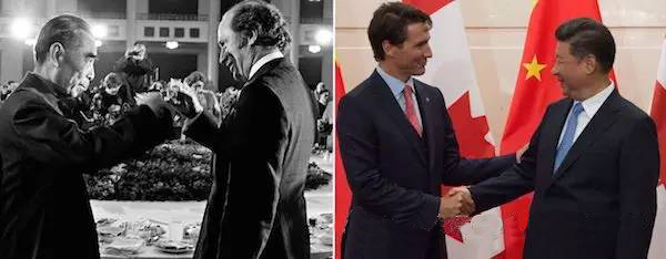 Justin Trudeau's dad Pierre Trudeau established diplomatic ties with China in 1973 whenhe was the Prime Minister: Justin Trudeau的爸爸Pierre Trudeau1973年访问中国,中加建交