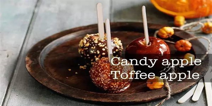 Candied apple/toffee apple/caramel apple: 冰糖苹果、太妃苹果、焦糖苹果